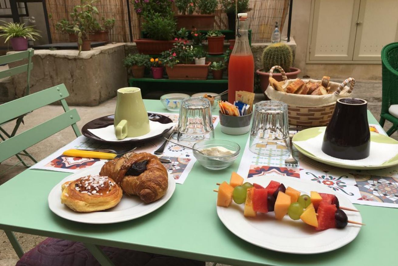 La colazione tipica Siciliana viene servita in Estate nel giardino.